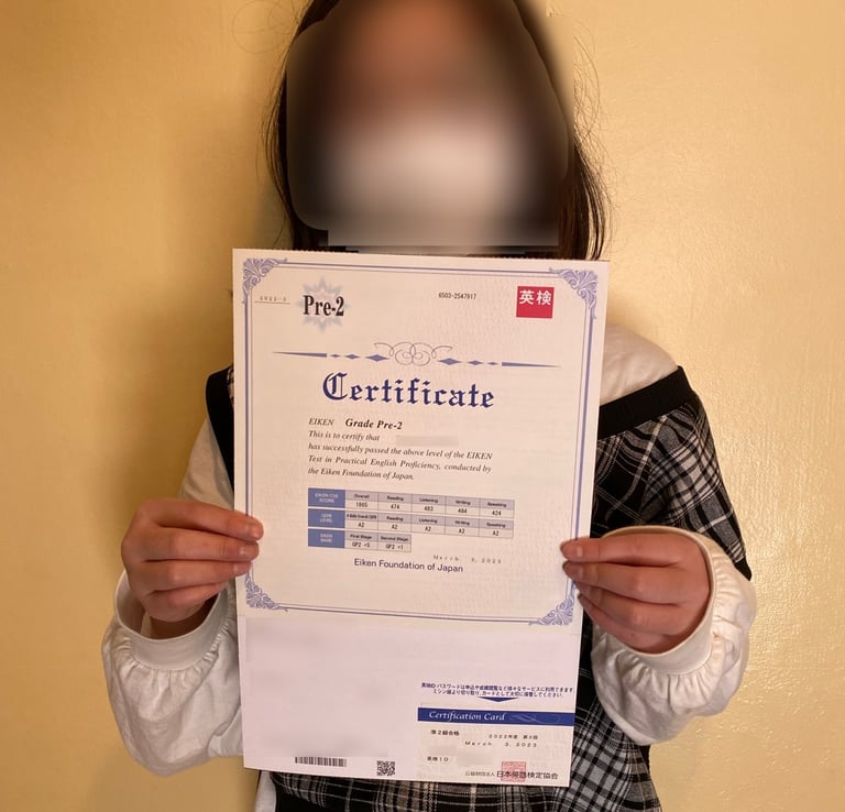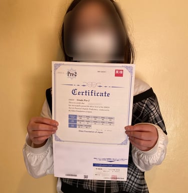 Congratulations to our student. She achieved Eiken grade Pre 2 in 4th grade of elementary school. A superb result.
